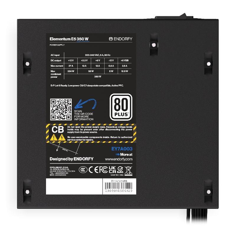 350 W marka: COOLING.PL o parametrach: Zasilacz Endorfy Elementum E5 350W ATX 120mm 80 Plus aPFC Bulk