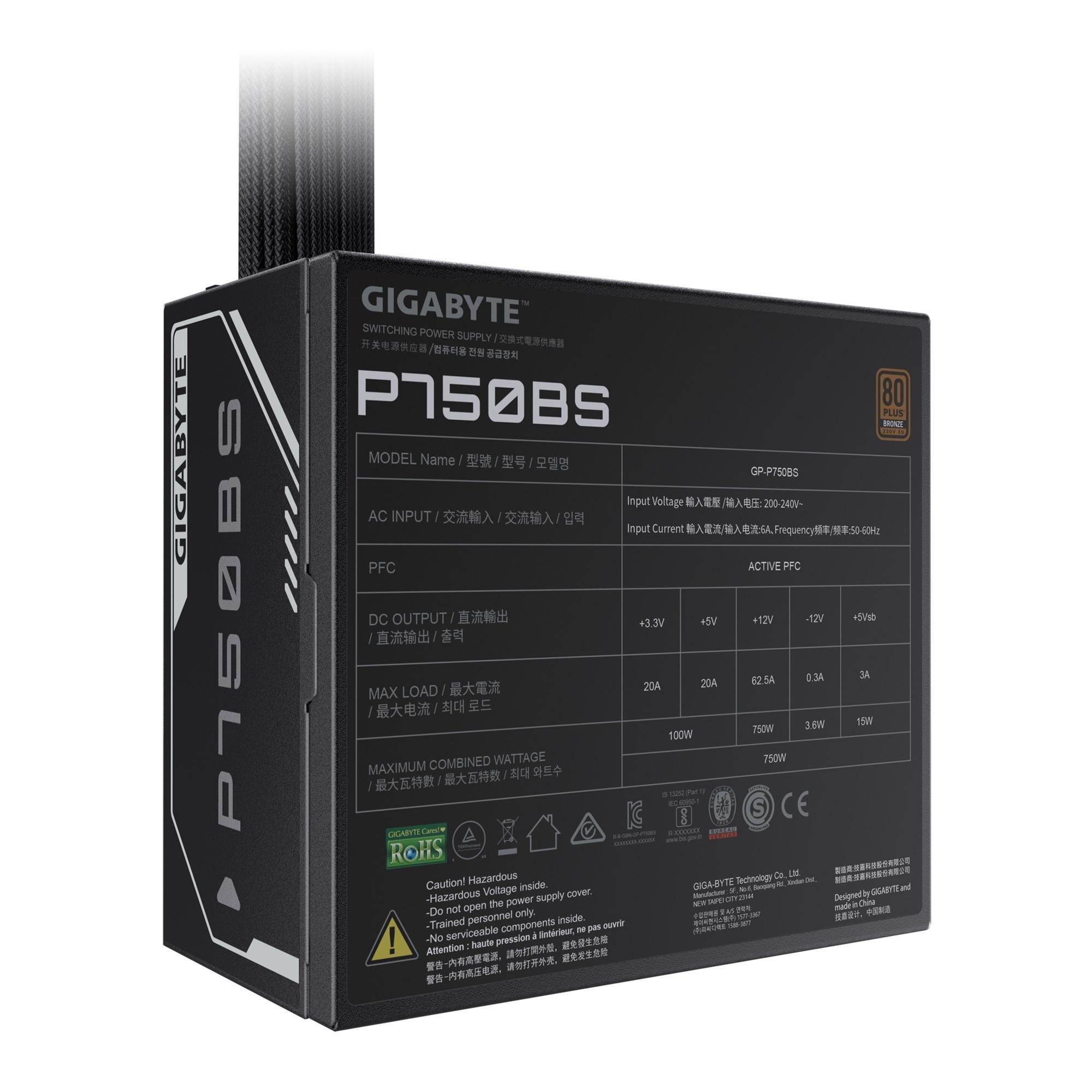 750 W marka: Gigabyte o parametrach: Zasilacz Gigabyte GP-P750BS 750W 120mm 80+Bronze aPFC