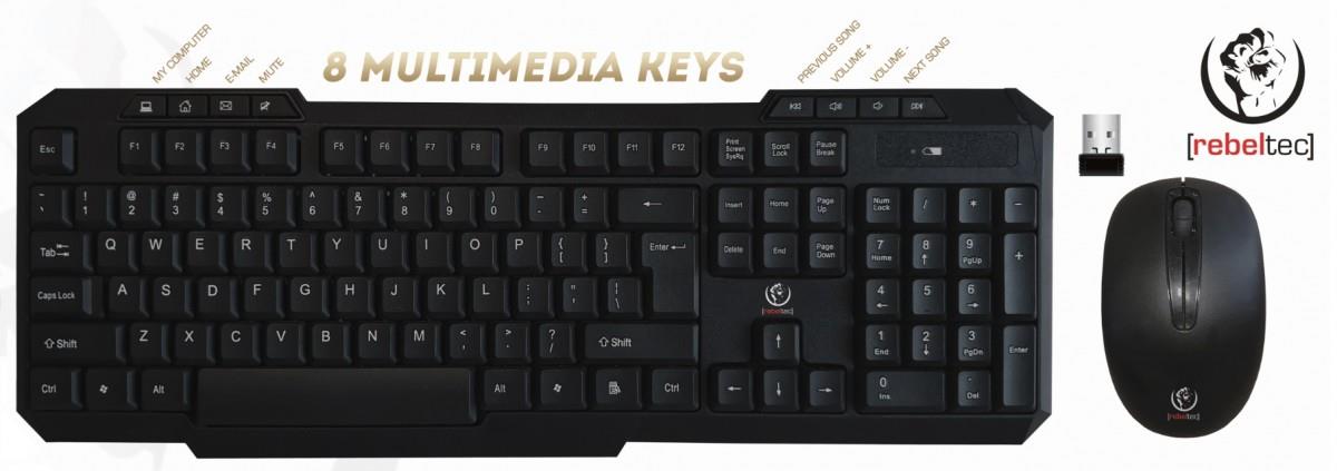 Bezprzewodowa marka: Rebeltec o parametrach: Zestaw bezprzewodowy klawiatura + mysz Rebeltec VORTEX czarny
